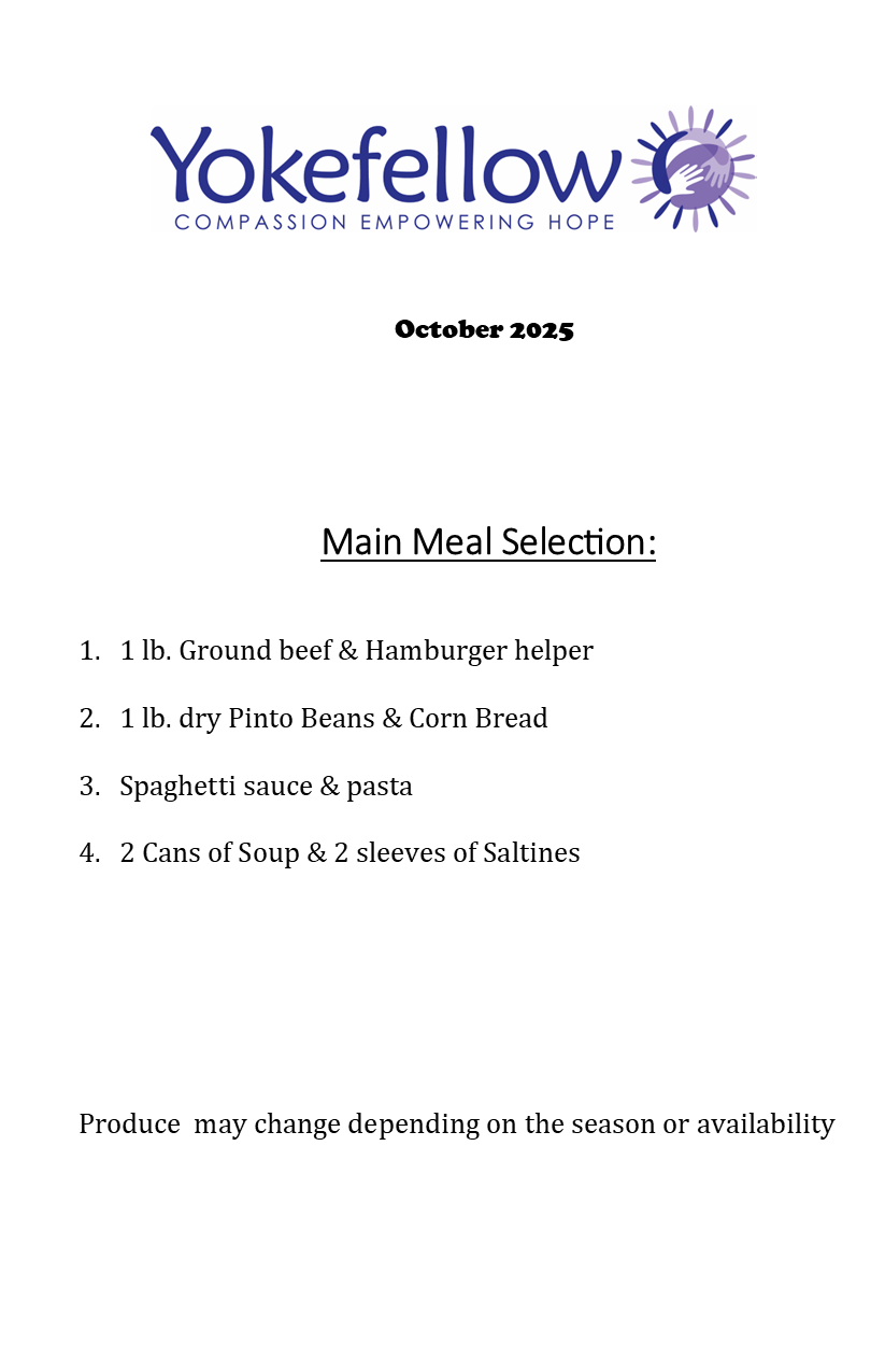 Donated food is greatly needed. In 2024, Yokefellow served more than 24,454 people who were hungry and in need of assistance with meals.